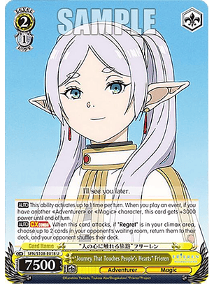 Pon las dos cartas superiores de tu mazo en la sala de espera, elige hasta 1 personaje de nivel X o inferior "Aventurero" o "Mágico" en tu sala de espera, y devuélvelo a tu mano. X es igual al nivel total de las cartas que este efecto pone en tu sala de espera. Guarda esta tarjeta en tu memoria. (Los Climax se consideran nivel 0)