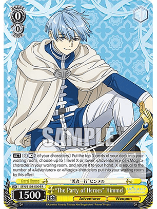 [AUTO] [CXCOMBO] Cuando esta carta ataque, si "Héroe" está en tu zona de clímax y tienes 3 o más eventos con "Magia" en sus nombres de cartas en tu sala de espera, elige uno de los siguientes efectos y realízalo. "Tu oponente pone las 12 cartas superiores de su mazo en su sala de espera, y esta carta recibe +1500 de poder hasta el final del turno." "Mira hasta 2 cartas de la parte superior del mazo de tu oponente, elige hasta 1 carta de entre ellas, ponla en la sala de espera del oponente y coloca el resto en la parte superior de su baraja en cualquier orden." "[Pon 2 cartas de tu mano en la sala de espera] Puedes pagar el coste. Si lo haces, inflige 3 de daño a tu oponente." (El daño puede ser cancelado)