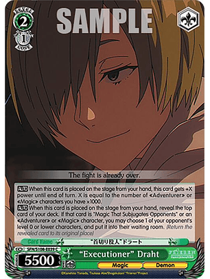 [AUTO] Cuando esta carta ataque, revela la carta superior de tu mazo. Si esa carta es un evento o un personaje "Aventurero" o "Mágico", elige uno de tus personajes y ese personaje recibe +3000 de poder hasta el final del turno. (Devuelve la carta revelada a su lugar original)
